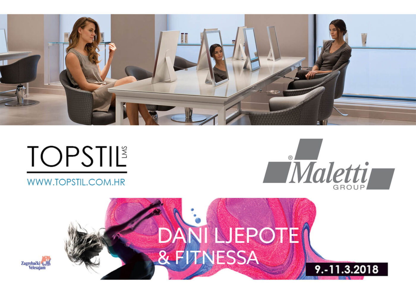 Dani ljepote i fitnessa, 9.-11.3.2018. noviteti i prezentacije frizerskog namještaja i kozmetike te profesionalni električni aparati. 5 Total Look Showa na Glavnoj pozornici.