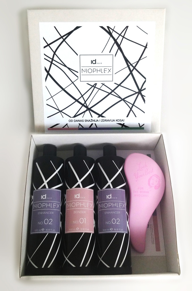 Niophlex Bonder. Miješa se sa drugim kemijskim proizvodima i stvara nove veze te istovremeno štiti unutarnju strukturu kose. Poboljšava jačinu i elastičnost kose.