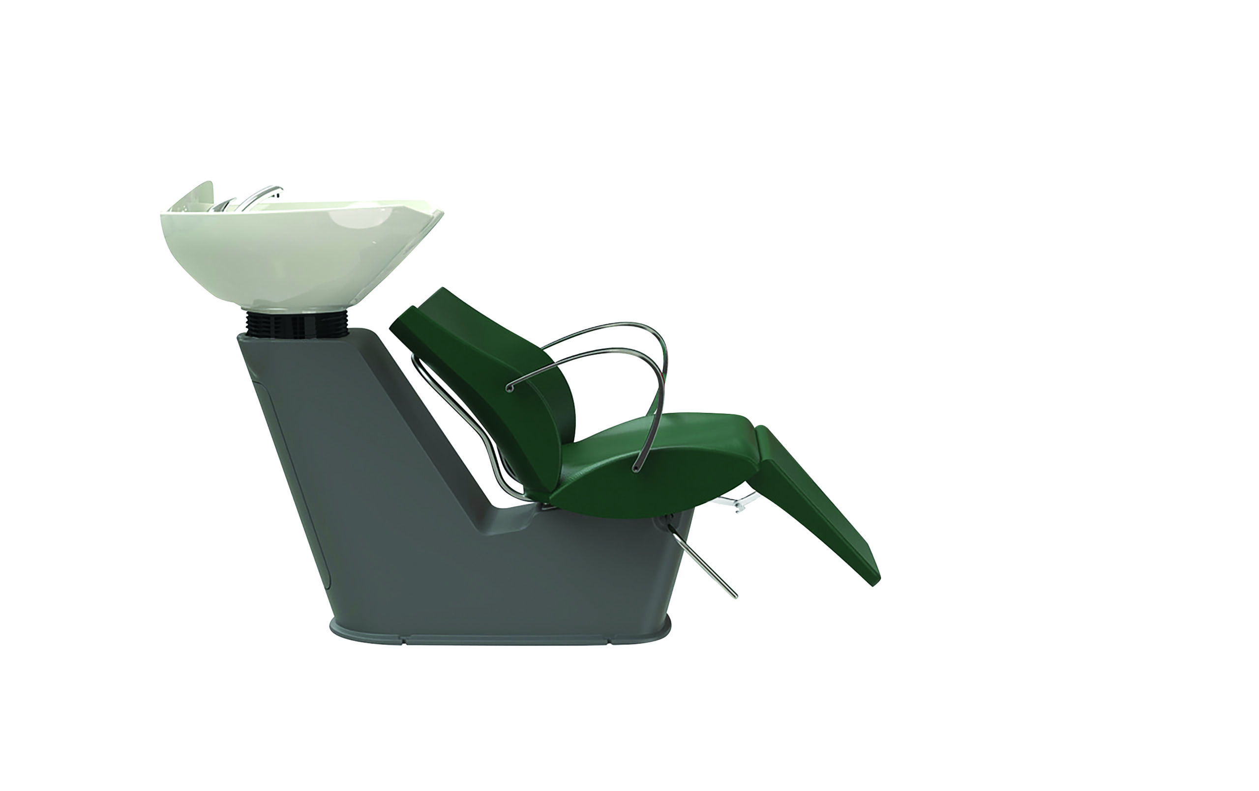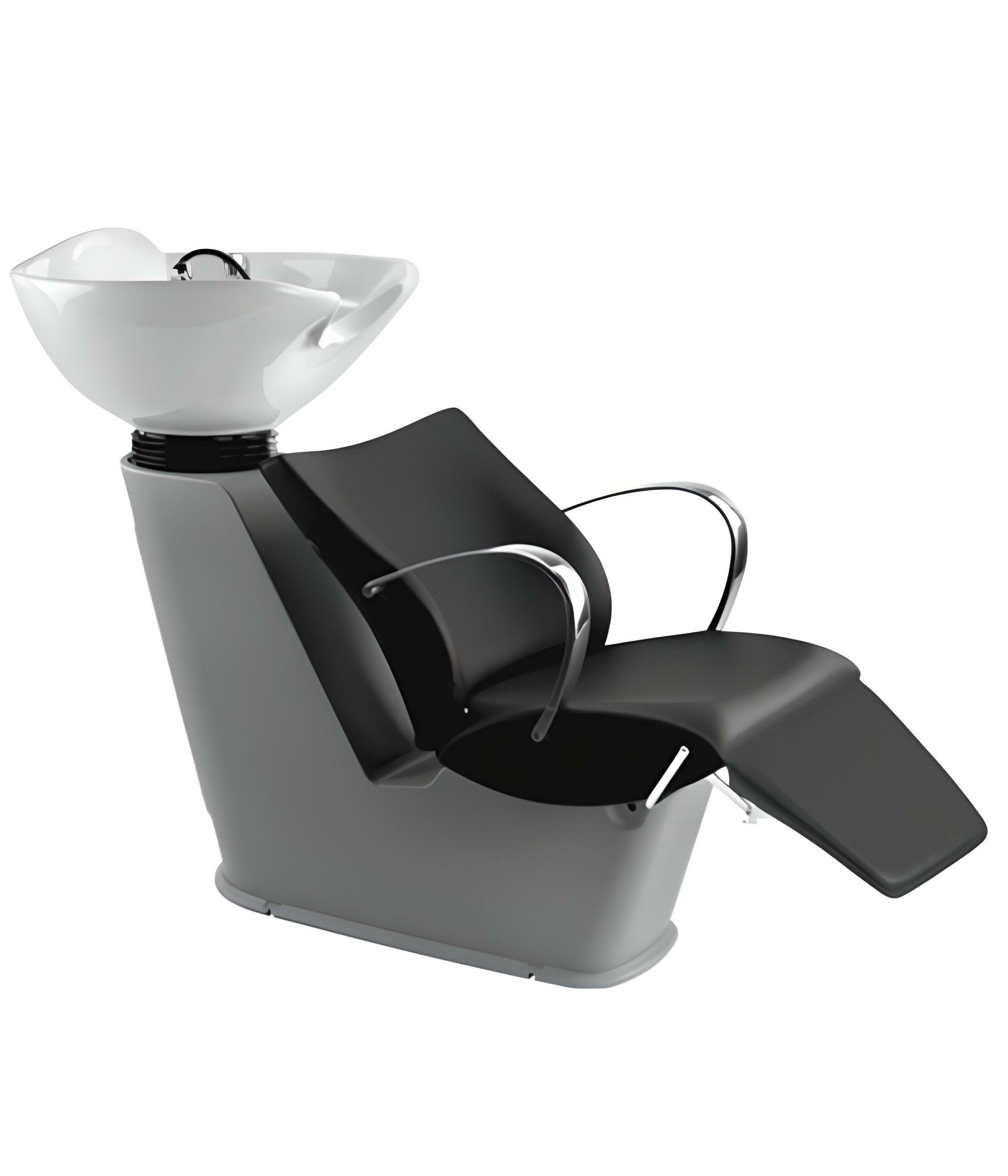 - Keramički umivaonik: Posjeduje bijeli emajlirani keramički umivaonik s mogućnošću naginjanja (tipping basin). Nagibni umivaonik omogućava frizeru da ga prilagodi za optimalnu udobnost klijenta i lakše pranje kose.