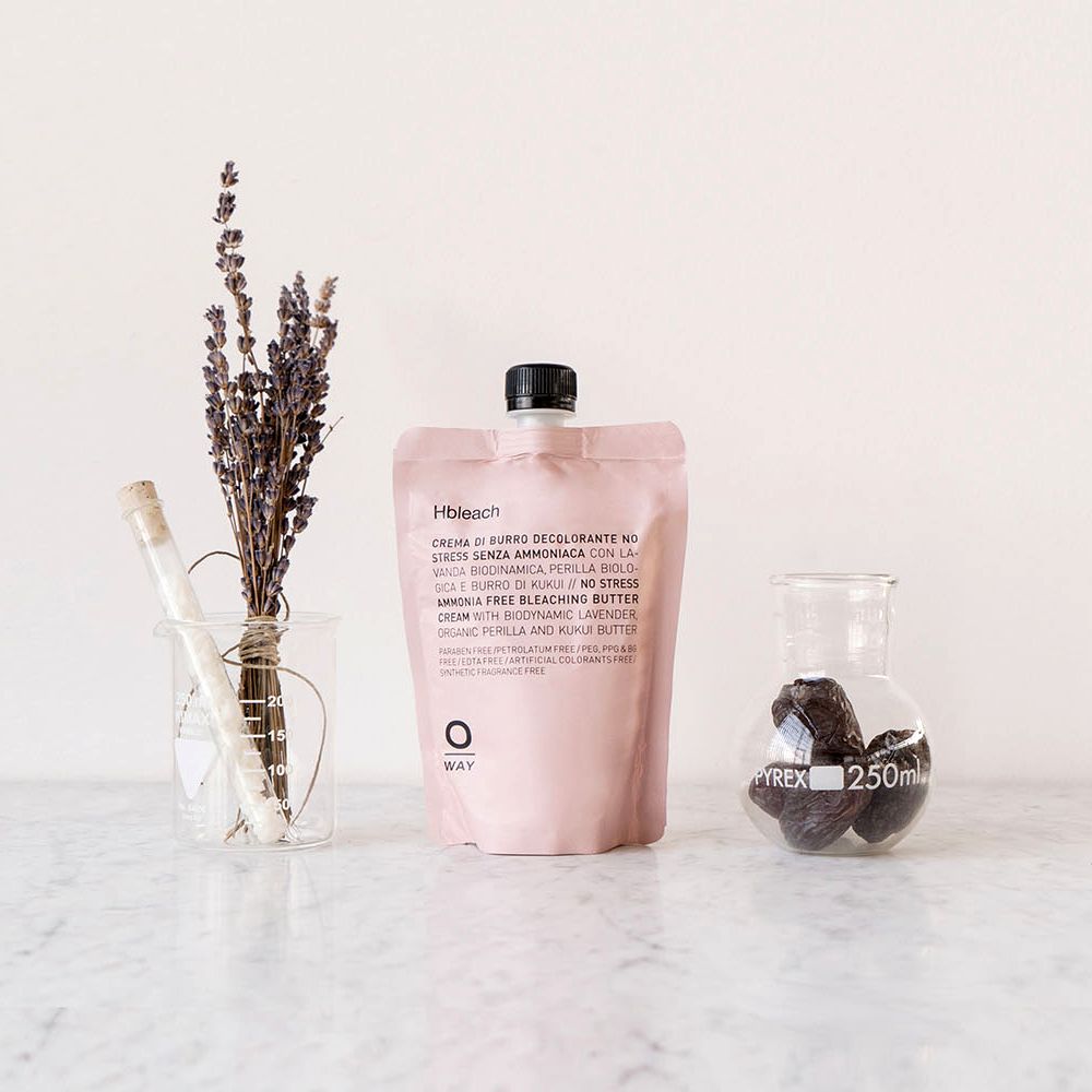 Oway Hbleach je hranjiva krema za izbjeljivanje bez amonijaka, formulirana s Kukui maslacem, etički dobivenim uljem datulje, biodinamičnim eteričnim uljem lavande i organskim uljem perile. Koristi mineralna ulja, silikate i sastojke biljnog podrijetla kako bi posvijetlila kosu do 7 tonova, istovremeno čuvajući zdravlje i vlažnost vlasi.
