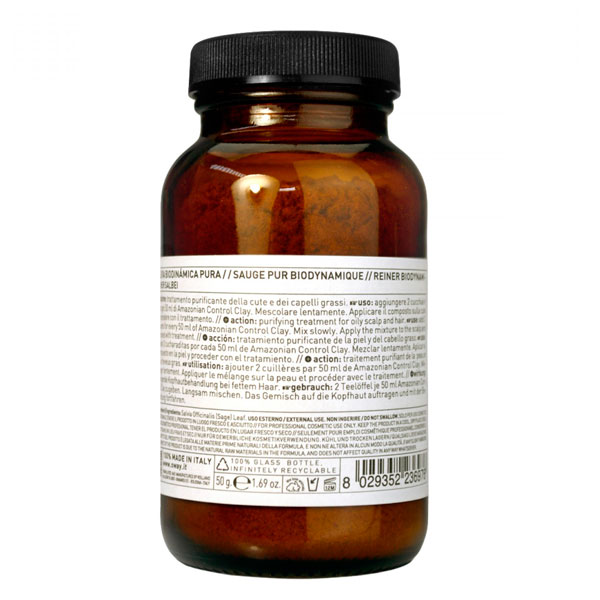 - Priprema mješavine: Pomiješajte malu količinu Oway Pure Biodynamic Sage praha s odgovarajućim Oway tretmanom za vlasište – Amazonian Control Clay (3 g praha + 50ml gline )