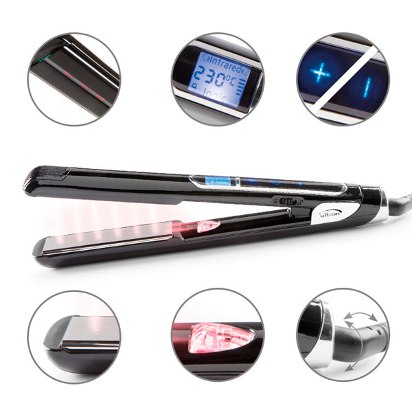 - Ploče od keramike i titana: Gornja ploča je keramička s infracrvenom tehnologijom, dok je donja ploča od titana s ugrađenim ionizatorom. Kombinacija ovih materijala osigurava ravnomjerno raspoređivanje topline i lako klizanje kroz kosu.